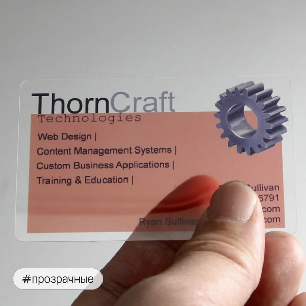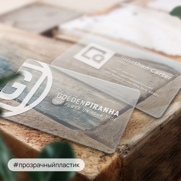 Прозрачные визитки на пластике — поле для креатива, чтобы запомниться на любом мероприятии.